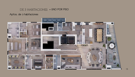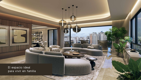 Entre otras comodidades internas, el apartamento cuenta con habitación de servicio y acceso a una zona de lavandería. También incluye clósets en cada habitación y en áreas adicionales para un mejor almacenamiento. La luz natural y la ventilación adecuada están garantizadas en cada espacio del apartamento.