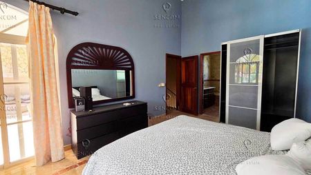 En el segundo nivel se encuentran las tres habitaciones. Dos de ellas comparten un baño bien distribuido, mientras que la suite principal disfruta de su propio baño privado y un amplio vestidor. En esta planta también destaca una terraza con vistas inspiradoras hacia el golf y la piscina, ideal para relajarse al amanecer o al atardecer.