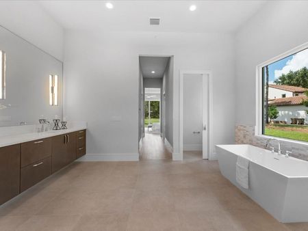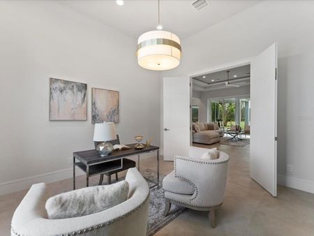 Ubicado dentro de la muy solicitada comunidad cerrada de Bella Collina, este diseño personalizado de Vogel Building Group ofrece privacidad incomparable en un magnífico terreno preservado de 1,89 acres sin vecinos traseros. Al ingresar al vestíbulo, lo reciben techos altos y abundante luz natural con vista a la belleza del área de conservación. El plano de planta abierto se extiende hasta la terraza de gran tamaño con cocina al aire libre, perfecta para reuniones familiares y entretenimiento. La cocina del chef con gabinetes KitchenCraft contemporáneos incluye bases de arce macizo de dos tonos con parte superior de melamina con vista a la gran sala y al comedor formal. Los electrodomésticos de alta gama incluyen una placa de inducción Thermador de 36", hornos empotrados de la serie Thermador Masterpiece de 30" y un refrigerador/congelador con panel Sub-Zero. El enclave principal con techos con molduras de 13 pies está cuidadosamente diseñado para brindar privacidad con puertas corredizas apilables que conducen al lanai y vestidores separados personalizados. Un baño privado ofrece tocadores dobles, bañera amplia independiente y ducha independiente de gran tamaño con cabezales de ducha dobles. Un cuarto dormitorio también puede servir como espacio flexible/de oficina para quienes trabajan desde casa. Viva el estilo de vida que se ofrece en Bella Collina. Las comodidades incluyen un complejo de piscinas al aire libre con bar y jacuzzi de gran tamaño, instalaciones de tenis Har Tru, canchas de pickleball y clases de fitness gratuitas. Disfrute de una cena con familiares y amigos en uno de los dos patios del restaurante y de los eventos sociales y culinarios que se ofrecen durante todo el año para todas las edades. Ponte a prueba con una ronda de golf en el campo de golf profesional de 18 hoyos diseñado por Nick Faldo, o disfruta de un tratamiento facial o un masaje en el spa.