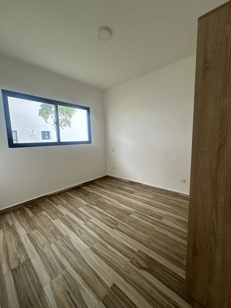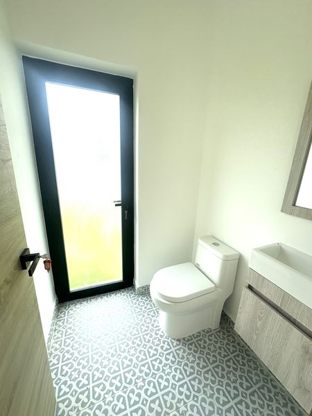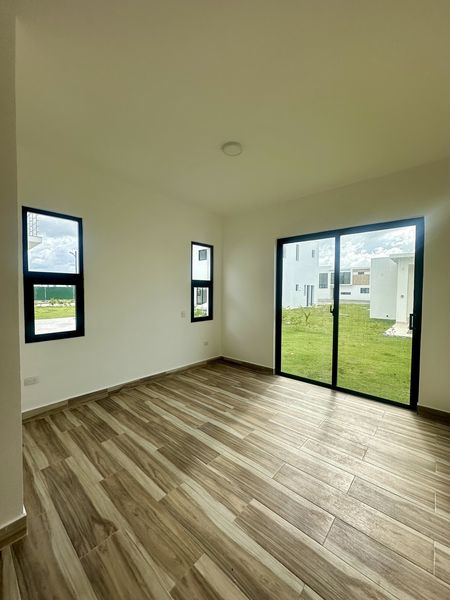 Área social abierta con vista al jardín, con amplios espacios para acomodar sala y comedor.